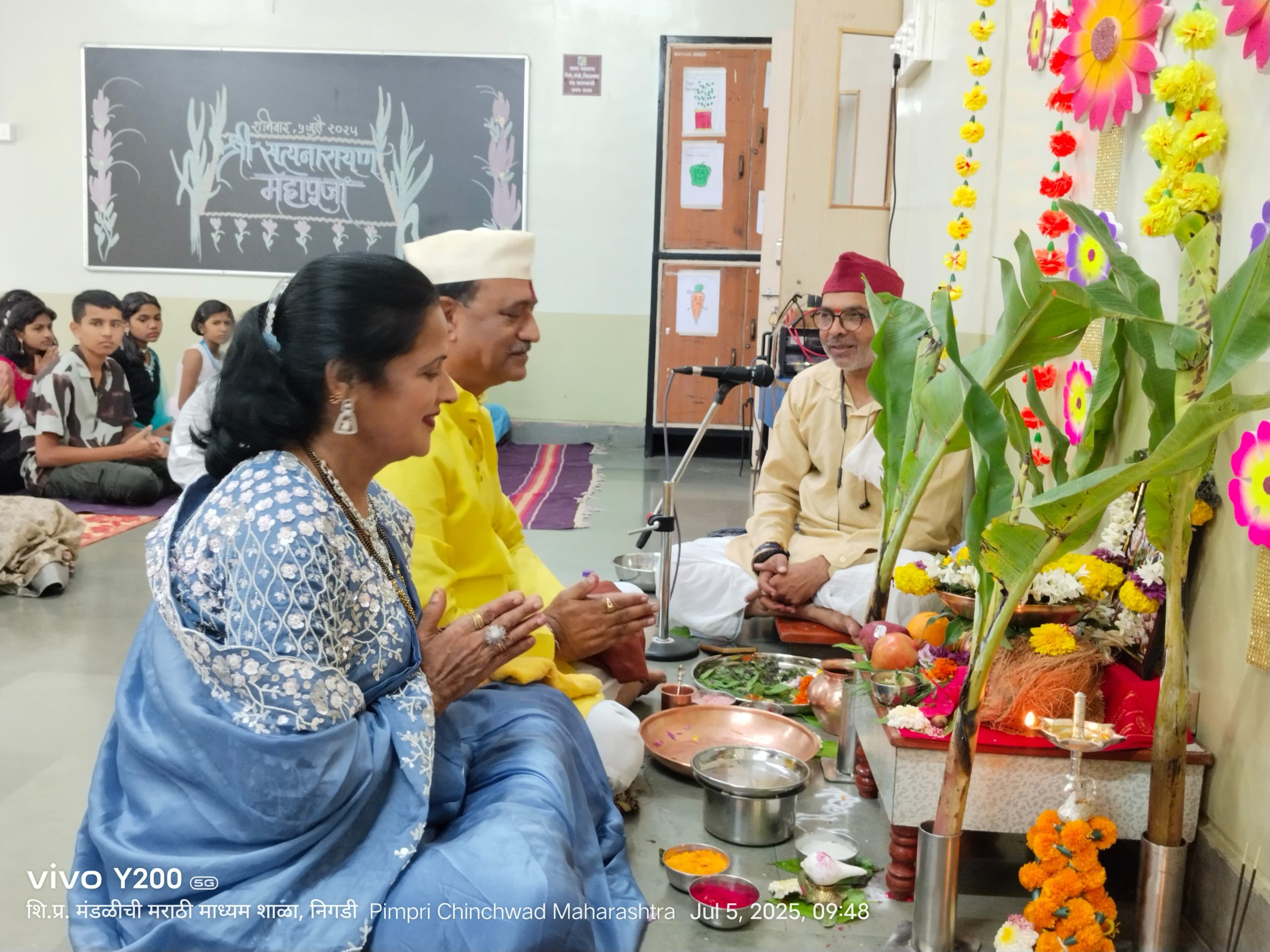 सत्यनारायण पूजेसाठी यमुनानगर परिसरातील माजी नगरसेवक, पिंपरी-चिंचवड परिसरातील पत्रकार, शाळेतील सर्व पालक व विद्यार्थी यांना आमंत्रित करण्यात आले व तीर्थप्रसाद देण्यात आला.